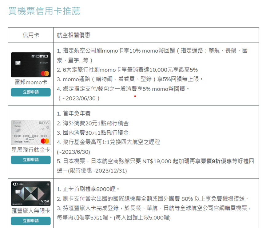無論你是選擇自由行還是跟團,富邦momo卡絕對是這一季度的最優選!它的10%回饋涵蓋超多航空,基本上都是我們非常熟悉的航空公司!而在旅行社則有高達5%的對應優惠,推薦給迫不及待旅遊的你!