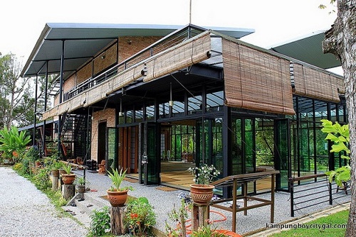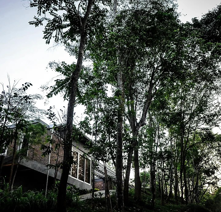 這間飯店位在森林內,環境清幽,可以見到東南亞典型的傳統建築——杆欄式建築。