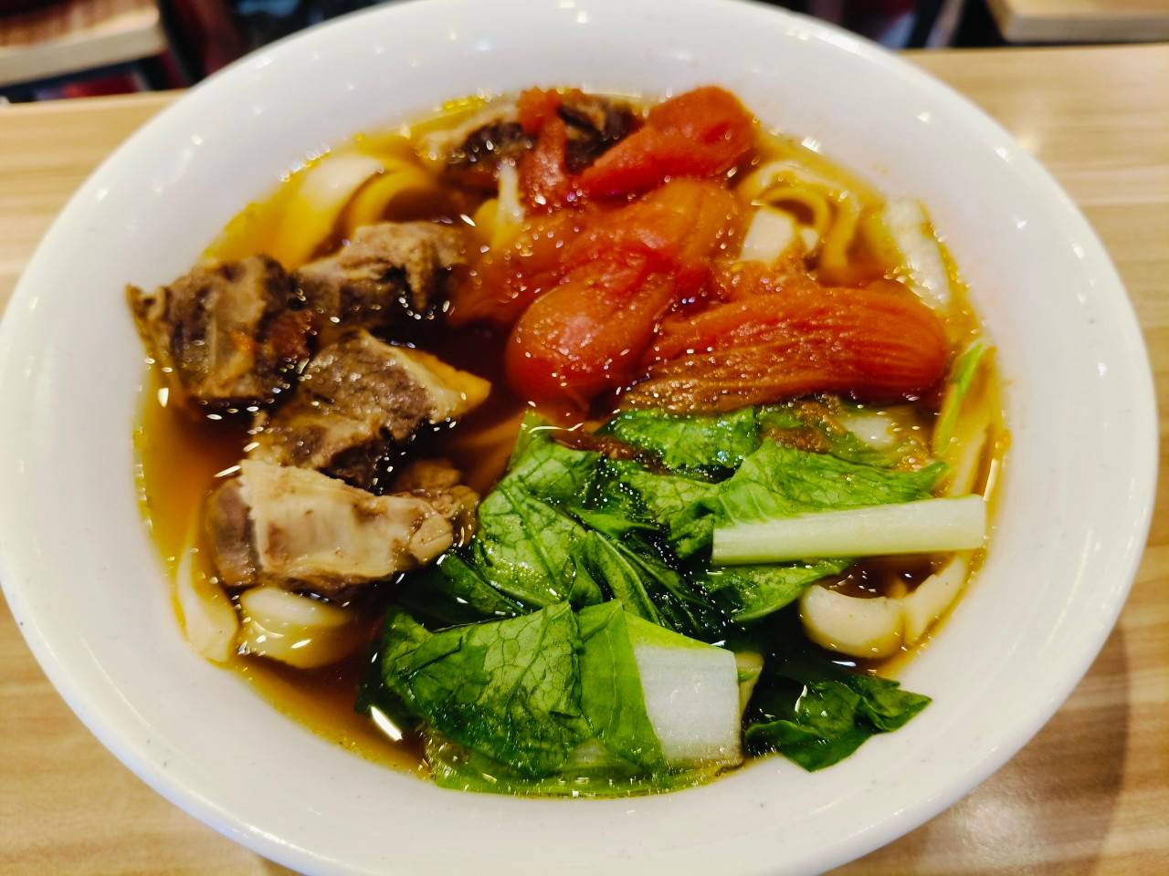不過最多人喜愛的,當然就是靠著一碗奪得美國CNN讚賞「台北最好吃牛肉麵」、2009台北國際牛肉麵節人氣店家第一名、2019台北國際牛肉麵節亞軍等獎項的番茄牛肉麵。以新鮮番茄燉出的清爽湯頭,帶有一股中藥清香尾韻,搭配有嚼勁的Q彈中寬刀削麵條,吃起來非常過癮,難怪可以獲得這麼多的獎項。