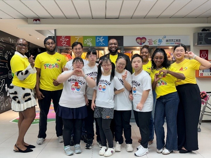 【記者吳明憲 / 綜合報導】聖克里斯多福及尼維斯聯邦駐台大使范東亞 (H.E. Ambassador Donya Lynex Francis) 上周偕同大使館人員與在台留學生一行六人,特別前往由唐氏症基金會設立的「明倫工坊」參訪。大使此行不僅與唐寶寶及身心障礙青年面對面交流,更深刻感受基金會長期投注於障礙者支持服務的成果。踏入明倫工坊的瞬間,大使范東亞以親切笑容與孩子們熱情互動,迅速拉近彼此距離。唐寶寶們早已準備好一段充滿活力的開場舞,隨著音樂節奏盡情舞動。每一個舞步、每一個笑容都真摯動人,將現場氣氛推向溫暖、歡樂且感人的瞬間。這份純粹而直接的熱情,也深深感染了大使及其隨行團隊。