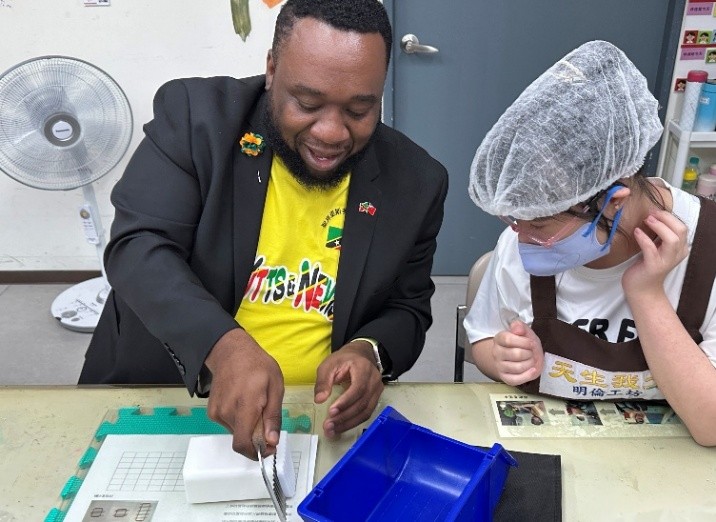 唐氏症基金會董事長林正俠表示:「看到范東亞大使以如此真誠、投入的態度與孩子們互動,我們深受感動。大使不僅以開放的心接觸明倫工坊的每一位孩子,也用心了解基金會在支持障礙者上的各項努力。他的到訪,讓我們感受到國際社會對唐氏症族群的關注與支持,更讓孩子們看見更加寬廣的世界。」林正俠董事長進一步指出:「基金會長期致力於促進障礙者參與社會、創造多元學習機會,而國際交流正是其中非常重要的一環。透過與聖克里斯多福及尼維斯聯邦的交流,我們看見更多合作的可能,無論在青年志工、語言教育、文化互動或公益倡議上,都有機會共同創造影響力。我們期待未來能與大使及其團隊攜手,推動更多鼓舞人心的跨國合作。」