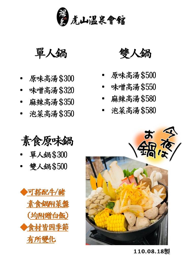 附近也沒甚麼餐廳,所以【虎山溫泉會館】也有提供晚餐,